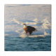 Örn på den pristina isigen sjö står på dekorativ keramik. Ett dramatiskt naturögonblick som fångas för visning hemma eller på kontoret!