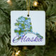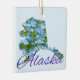 Vilden, lilla, Alpine Glöm-Me-Nots blev officiellt Alaskas statsblomma 1917, innan Alaska officiellt blev en stat. Det är med den här vackra lilla blomman. Det finns mycket symbolik i "Glöm mig inte": sant och fördärvande kärlek, hågkomst när man skiljs från nära och kära eller till och med efter döden, en visceral koppling som varar i tiden och trohet och lojalitet i ett förhållande, trots separationens utmaningar. En symbol för hågkomsten av det armeniska folkmordet som började 1915, "Glöm mig inte", är också en symbol för Alzheimer's Society, som används för att öka medvetenheten om denna försvagande sjukdom som får våra nära att glömma. Men denna utformning är inte bara en hyllning till denna vackra lilla blomma, den betalar också vår 49:e stat Alaska heder. Större tänkan av glaciärer och is och snö och kall när de tänkor Alaska. Eftersom nästan en tredjedel av staten bor i den arktiska cirkeln är det förståeligt. År 1915 upplevde Alaska dock en rekordhög nivå på 100 grader (F). År 1971 upplevde de naturligtvis en rekordlåg nivå på -80 grader (F). En del av Alaskas terräng är ganska bergig. McKinley, i Alaskas insida, är den högsta punkten i Nordamerika på 20 320 över havsnivån. I själva verket ligger sjutton av de tjugo högsta topparna i Förenta staterna i Alaska. När du tänkor vulkaner kan du (rimligtvis) ha tänka av vår femtionde stat, Hawaii. Alaskas berget Augustine utbröt så sent som 1986. Om ni minns er Amerikansk historia, vet ni att köpet av Alaska (på en pris av två cent per hektar) var gång kallat "Sewards's Folly", eftersom utrikesminister William Seward erbjöd sig att köpa det från Ryssland. Den efterföljande "guld-rusningen" 1880 och den nyare upptäckten av vad som anses vara Nordamerikas största oljeutsläpp i fält visar att Sewards erbjudande var allt annat än dåraktigt. Dessutom kommer större delen av Amerikas lax-, krabba-, hälleflundra- och sillhaltig kom från Alaska. Alaska är den största staten i Förenta Stater och är mer än dubbelt så storlek som Texas. För att få detta i rätt perspektiv är avstånd från Jacksonville Beach, Florida till San Diego, Kalifornien ungefär 2 365 miles och Alaska är 2 700 miles brett. Med tanke på att det är rikens (den tänkta) historia, kan det förvåna er att höra att statsterollen för Alaska är "nord till framtiden". Denna fina utformning, som firar det 49:e tillägget till Förenta staterna, ger en skiss över Alaska, fylld med sin statsblomma, vilden, Aline-Glöm-Me-Not. Den här fina designen är övertäckt med lilan "ALASKA" på detta fantastiska prydnadsämne. Oavsett om du dekorerar ett träd med minnen av dina resor eller betalar vår 49:e stat, är detta fantastiska prydnadsföremål ett utmärkt val.