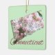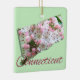 Varje green lämnar och fängslar stjärnformade blommor, som framhävs med särskilda burgundblotser. Bergslafen är en av de vackraste shruberna i Amerika. Också känd som ivybush, fårlager, calicobush, lambkill (eftersom växterna är mycket giftiga, särskilt för små djur), clamoun och spoonwood (eftersom de inhemska amerikanerna tillverkade skedar från skogen). Laurelblommor är ambition, framgång och berömmelse. Även om de ser mycket lika ut finns det en stor skillnad mellan bergsLaurel och Bay Laurel (används för att laga mat och för att göra berömden, ljuda vågor). Till skillnad från Bay Laurel är praktiskt taget alla delar av berget Laurel giftiga för både människor och djur. Bergslätten i Pennsylvania erbjuder en fantastisk visning i maj och juni med blommor i nyp, vita och blommigtar. Men den här designen är inte bara en hyllning till denna fantastiska blomma, den betalar också vår hyllning till vårt femte tillstånd, Connecticut. Av 50 stater är Connecticut den 48:e största . . . eller 3:e minsta i unionen. För en stat som, TEKNISKT, inte ligger på havet (Long Island Bay är faktiskt en flodmynning) har Connecticut en rik marin historia och ett fantastisk maritima museum i Mystic. Även om det officiell smeknamnet är "Konstitutionsstaten", känner Connecticut också till "Nutmeg-staten", "Bestämmelsestaten" och "Staady Habits". Ekonomi och försäkring är de viktigaste industrierna i Connecticut, kanske inte så förvånande eftersom det också är Charles Dow, grundaren av Journal och Dow Jones AND J. P. Morgan, finansiär och filantropist. Det är naturligtvis också födelseplatsen för bland annat före detta president George W. Bush, Katharine Hepburn, Meryl Streep och Noah Webster - som i Websters ordbok.. Denna fina utformning, som firar det femte tillägget till Förenade Stater, ger en översikt över läget i Connecticut, fylld med deras statsblomma, den vackra bergsLaurel. Den här fina designen är överlagrad med en samordnande rosa "CONNECTICUT" på detta fantastiska prydnadsämne. Vare sig du dekorerar ett helgdag med minnen av dina resor eller betalar vår femtonde stat, är detta fantastiska prydnadsföremål ett utmärkt val.