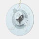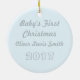"Baby Första jul" Hanging Ornament. Pastel Blue/grått Space-grafik med raketer, måne och stjärnor. Anpassa namn och år till kostym. Underbar för födelsedagar, dödande eller nyfödda baby-gåvor - bra för hängning på Julgran.