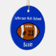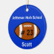 Anpassningsbarnas julprydnad i fotboll utförd i blått, runt form, med namn, lag eller namn i vitt, och jersey-nummer i svart på en fotbollsikon. Anpassa namn eller text till kostym efter dina behov. Gör en fin prydnadsspelare eller en stjärnfotbollsspelare.