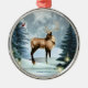 Den digitala konsthantverken i hjort på vinterscenen, den digitala konsten silver, satte upp stil ornament. Finns i olika former! Den här silver-konsten har en hjort på en vacker vinterscen med lysande lyktor, ljus snö täckt land och träd, och även en liten kardinalvän! Allt på en underbar, stor måne-belyst bakgrund och i vinskade nyanser och blues! Bilden visas inuti ett silver-ramat utseendemönster. Baksidan av prydnaden är silver. Det hänger från ett underbart rödsatin. Ett underbart tillägg till din prydnadssamling, helgdag-dekoration eller som en söt liten helgdag till familj och vänner. Om du vill ha mer helgdag-digital konsthandling, hälsningskort och andra underbara presentartiklar kan du besöka vår butik!