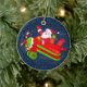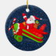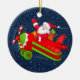 Kute jultomten flyger ett flygplan med en säck fullt gåvor och propellern har rött och vitt rand ornament.