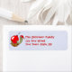 Den roliga sköldpaddan i tomten som håller på en röd julgran-ornament på helgdag returadressetikett. Anpassade.