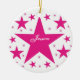 Superstar-samlingen Rund Ornament i magenta med en kaskad av roligt stjärnor. Den här söta och gigantiska stjärndesignen skulle ge en underbar gåva till vilken dotter, dotter eller annan ung kvinna som helst i ditt liv. Den här roligten stjärnan skulle göra ett underbart keepéprydnadsämne genom att lägga till en namn- och/eller personlig-fras.