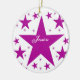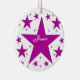 Superstar-samlingen Rund Ornament i lila med en kaskad av roligt stjärnor. Den här söta och gigantiska stjärndesignen skulle ge en underbar gåva till vilken dotter, dotter eller annan ung kvinna som helst i ditt liv. Den här roligten stjärnan skulle göra ett underbart keepéprydnadsämne genom att lägga till en namn- och/eller personlig-fras.