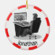 Videospelande Ornament med rött och vitt yttre ring ram och anpassade på framsidan och baksidan.
