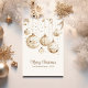 Skicka varmt helgdag önskemål med det här Helgdag för Guld och vit Julgran-ornament i elegant. Kortet visar på ett vackert sätt att illustrera boll-prydnadsföremål från julen i guld, där ett klassiskt vitt träd läggs till. Allt ställs mot en snöbakgrund som utstrålar otidsenlig charm. Perfekt för familj, vänner eller kolleger, dess sofistikerade utformning fångar den festliga andan på ett snyggt och minnesvärt sätt.