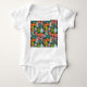 Den här baby-karosserin har en juldesign av ett virke av olika prydnadsföremål i många färg.