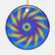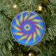 En grafisk återgivning av ett pinhjul i gult, orange och rött verkar flyta med den blå glob som har ett tredimensionellt utseende.