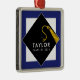 Grad keepsakpresenter med svart studentmössa och guld tassel-design på blå bakgrund. Redigera text om du vill lägga till student namn och klassåret.