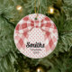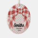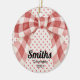 Personalized Christmas ornaments featuring a charming illustration of a red plaid bow—customize it with your name for a special holiday touch!