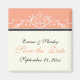 Korall för prydnadsdjur i gräns, vit bröllop anpassningsbar Spara datum magneter, med vacker korall och vit gräns för prydnadsdjur med rullverk på elfenbensbakgrund.