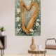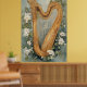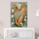 An ornamental harp surrounded by white flowers. Here are some details about this instrument: