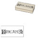 Frimärke har ord "Dream" som dekoreras med en prydnadsblommande design.