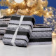 Ornamentärt vitt snöre, isolerad svart bakgrund. presentpapper