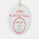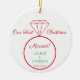 Denna punkt är perfekter för par som nyligen har varit gifta och som för första gången firar jul som gifta par. Framsidan har ett bröllop ring med anpassning för namn och bröllop. Baksidan av prydnadsämnet har ett rött och vitt rand mönster för extra helgdag.