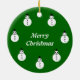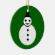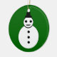Den här roligtens festliga Julgran-dekoration har en leende vit snögubbe med svarta knappar och en top hat. Han ser ut som en coola och vill hjälpa kärlek att sprida julglädjen i år. Bakgrunden är en fasansfull skugga av grönt. Snögubbe visas gång på utsmyckningens framsida och cirklar ord "god jul" på utsmyckningens baksida. Anpassadet är att du kan anpassa presenten om du vill.