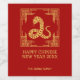 Eleganten nyår mönster har en kinesisk orm från guld med ett grekiskt ornament ram på röd bakgrund.
