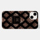Den här telefonväskan har en ornerad vintage mönster av ro guld damm på en svart bakgrund. Anpassa den med det ursprungliga teckensnittet och namn i serieteckensnittet, med en svart fyrkant och ro guld.