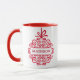 Fira julhelgen med den här eleganten, personlig jul mugg, med en dekorerad dekorationsdesign i festive red. Den invecklade prydnaden omger ett anpassade namn, skapar den en perfekt gåva till nära och kära eller ett speciellt säsong-kontrakt åt dig själv. Mugg insida kompletterar på ett vackert sätt dekorationsdesignen och lägger till en liten bit helgdag. Idealisk för kaffe, te eller hett kakao ger mugg en personlig till varje plats under helgdagarna. Underbar till julmorgon eller festliga sammankomster, det är en charmerande keepé som kan njutas år efter år.