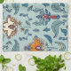 Ornate floral pattern on a pale blue background, featuring stylized orange and blue flowers and leaves. The design is symmetrical and vibrant.