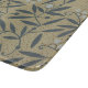 Ornate floral pattern with dark blue vines and leaves on a beige background. White circular flowers with gold accents add elegance and contrast.