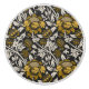 Ornate floral pattern with large gold flowers and cream leaves on a black background. The design is intricate, vintage-inspired, and elegant.