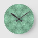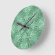 Väggklocka med ett detaljerat och krångligt mönster av löv och snurrar i grönt och vitt. Ornate symmetrisk design i gröntar för att dämpa coolan.