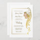 En elegant guld-manusinbjudan till bröllopsbröllop med en guld-ram med en blommigt för guld och rosa som en del av ram. Texten är lätt att anpassa för att du ska kunna lägga till dina egna uppgifter efter behov.