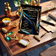 Bröllop-kortets utformning visar en ornat, gyllene ram med invecklad blommigt och botaniska detaljer som skapar en regal och lyxig känsla. Den djupa svarta bakgrunden motverkas av att man flödar teal och mörk blått rosett band med ett känsligt mönster i guld, vilket tillför lite elegans och sofistikering. Konsten stil blandar ihop klassiskt och modernt inslag, med fokus på opulent detaljrikedom och rik färg kontrasterar, skapar det ett perfekt val för ett formellt och stort bröllop firande. Anpassa texten om namn och detaljer om bröllop. Du kan ladda ned kortet till din mobila enhet eller dator. Jag designade kortet med hjälp av generativ hjälp.