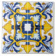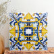 Ornate Mediterranean Blue and Gult Kakelplatta
