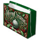 Crimson and Green Ornate Christmas Tree Gift Bag, personalize the text to anything you want when you order
