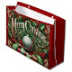 Crimson and Green Ornate Christmas Tree Gift Bag, personalize the text to anything you want when you order