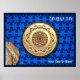 En ornate metall Passover matzah-bricka med en 3D frakttal Magen David (David stjärna). Plattan och två biet av runda shmura matzah läggs ovanpå en blå bordduk med många Magens David. Hebreiska texten på plattan lyder: "מ צ" (matzah) och "פ ח ש öppning" (pesach sameach - Lycklig Pesach). Mer hebreisk text läses, "!ח ג ש מ ח" (chag sameach)! - lycklig helgdag!) visas också. Du kan anpassa genom att lägga till ytterligare text.