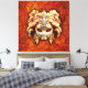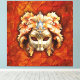 Ornera mask med Orange fjädrar på röd bakgrund Canvastryck