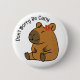 En söt brun kapybara teckning med en orange blomma på huvudet med orden "Var inte rädd för att bli kapy" i svart skrift över hennes huvud.