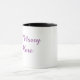 Oroa dig inte jag är här minimalistisk lila skrift mugg