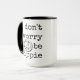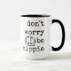 Oroa dig inte för att vara hippie, med fredstecken, citat på mugg.