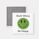 Oroa dig inte, var Lycklig magnet. I grönten, lycklig ansikte med vit bakgrund, kommer säkert alla att bli glada! Anpassa texten och bakgrunden till färg! Se till att checka ut mina andra produkter på zazzle.com/lsarmentoart*