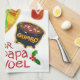 Orsaka kökshandduk med illustrerade kakor av Pappa Noel, Gumbo, Hett Sauce, Alligator, Kräftor Sack, Pirogue och Accordion. Skål! från Buckner Design House.