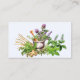 Kortmall för örter för herbalist, naturläkare eller apotekare. Grupper av läkande örter visas på framsidan och baksidan. Lila färg med gulgrön text som kan anpassas på tre ställen på framsidan. Inkludera affärsinformation i fet stil högst upp. Lägg till ett namn i skrivstil under, med mer tryckt text för kontakt, webbplats, sociala medier och / eller adress. All text är högerjusterad. Örterna är ashwagandha, gurkmeja och ingefära på framsidan med fler örter på baksidan.