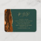 Den lämnat kant i denna elegant med det moderna-kortet för webbplatshöljet i bröllop har en bränd orange och en rost vattenfärgad agate i gräns som trimmas med faux guld glitter. Rubriken visas i handskriftsskript för guld-färgad, med texten anpassade nedanför i malltypsteckensnitt på en mörk grönt bakgrund. Ange URL:en för webbplatsen bröllop för att skapa en QR-kod på baksidan, ramad av orden "sök mig till OSA".
