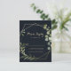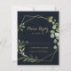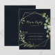 Denna geometriska kalligrafi av den blå grönten i guld är en perfekt för ett modernt bröllop. Utformningen har handmålad vacker grönt som lämnar i mörk blått bakgrund och lägger till ett guld geometriskt ram.