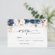 OSA kort av marinblått och Dusty Ro Bröllop Ceremony. Den här inbjudan till snyggt & elegant bröllop Shower har en fantastisk, handmålad vattenfärgsfärg, marinblå och dammblå Ro-Blommigt. Sök efter matchande objekt i Blommigten Navy Blue och Dusty Ro.
