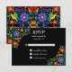 Mjölkfull mexikansk fiesta-OSA kort med konstblommor mot en dramatisk svart bakgrund (du kan ändra färg till kostym till smaken). Underbar för destinationsbröllop i Mexiko, Cinco de Mayo bröllop, eller för någon som kärlek mexikansk kultur. En del av vår mexikanska blomstersamling.
