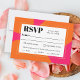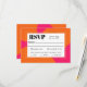 Ett djärvt och vackert bröllop OSA-kort med en modern reflex i ett dynamiskt färg-schema av shock rosa och orange. Det här färgstarka responskortet har ett utseende med ljusa rundade former av orange över en shock rosa. Textmallen i contemporary är av skarp typ ansikte med en reflex och genomför temat på ett vackert sätt. Textmallen innehåller alternativ för val av måltider för dina gäster som du kan redigera med dina inlägg.