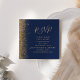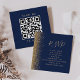 Det moderna kant-kortet för webbplatshöljet i bröllop som är lämnat i elegant har ett guld faux glitter gräns. Rubriken visas i handskriftsskript för guld-färgad, med texten anpassade nedanför i mönsterteckensnitt på en marin blå bakgrund. Ladda upp QR-koden för webbplatsen bröllop för att ersätta exempelbilden på baksidan, ramad av orden "sök mig till OSA".