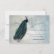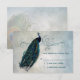 Snyggt OSA kort med vintage fribock och ornera rulla överst gräns på vattenfärgsbakgrund i blå toner. Baksidan av inbjudan har samma bakgrund med påfågelfjäder. Samordna delart tillgängligt i lager.