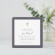 En enkel och klassisk baptisminbjudan innehåller ett enkelt guld färg kor och ett modernt handskriftsskript med ett rundat hörn i midnattsblått gräns. Baksidan av den här snyggtens baptisminbjudan innehåller en QR-kod med Osa för gäster. Denna vackra inbjudan är också perfekt för en vuxen baptism. Denna traditionella inbjudan från religiösa tillfälle är en perfekt för en katolsk hedersbössa av baptism, kristen baptism eller kristendom.